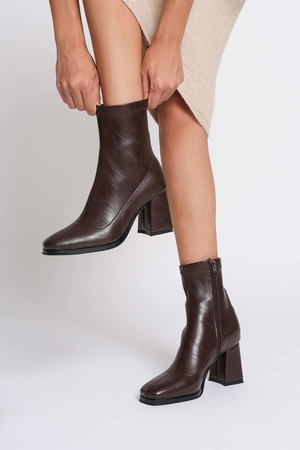 Mado Acı Kahve Küt Burunlu Kalın Topuklu Streç Bot