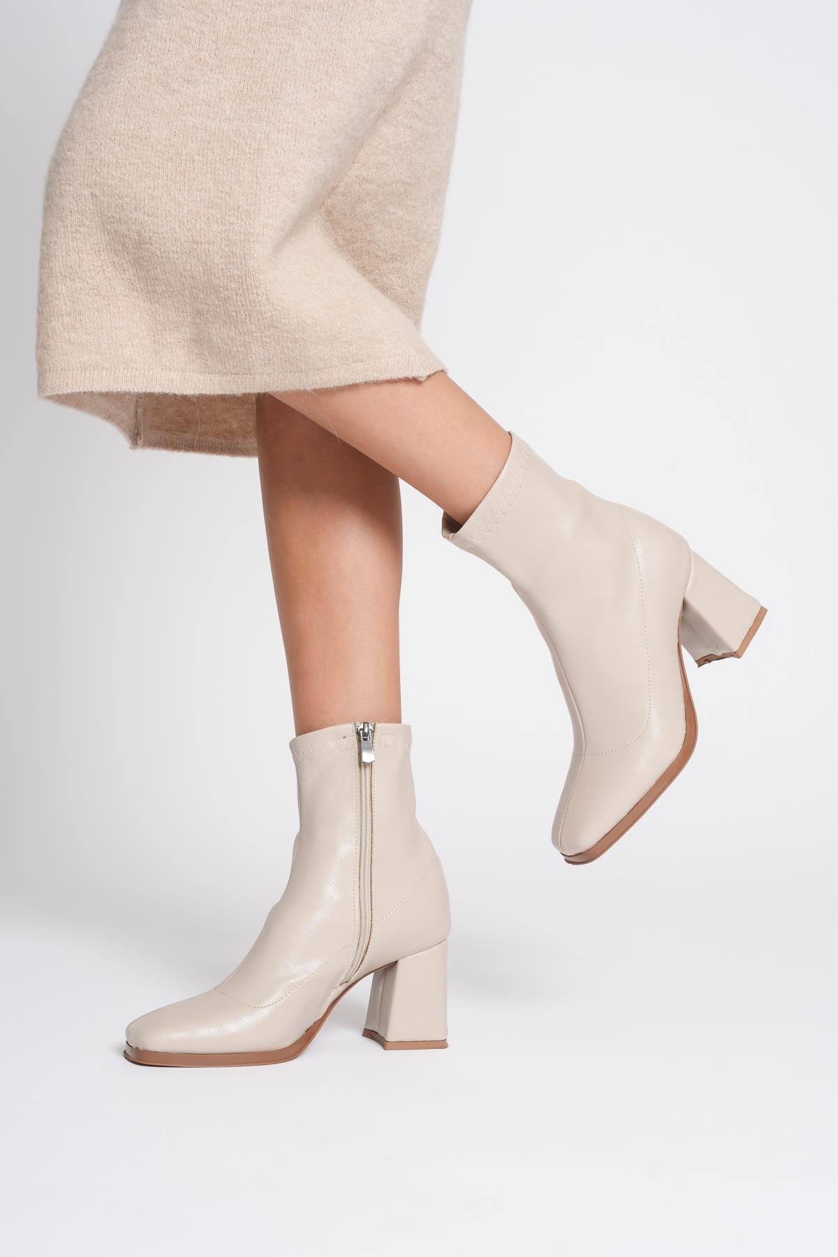 Mado Bej Küt Burunlu Kalın Topuklu Streç Bot