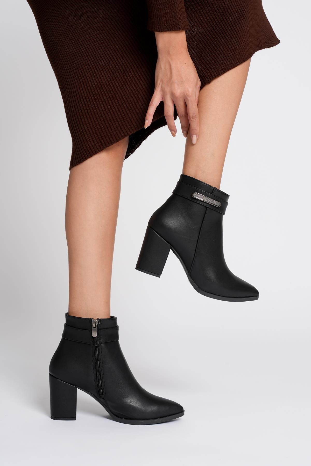 Marya Siyah Cilt Fermuarlı Sivri Burunlu Kalın Topuklu Bot