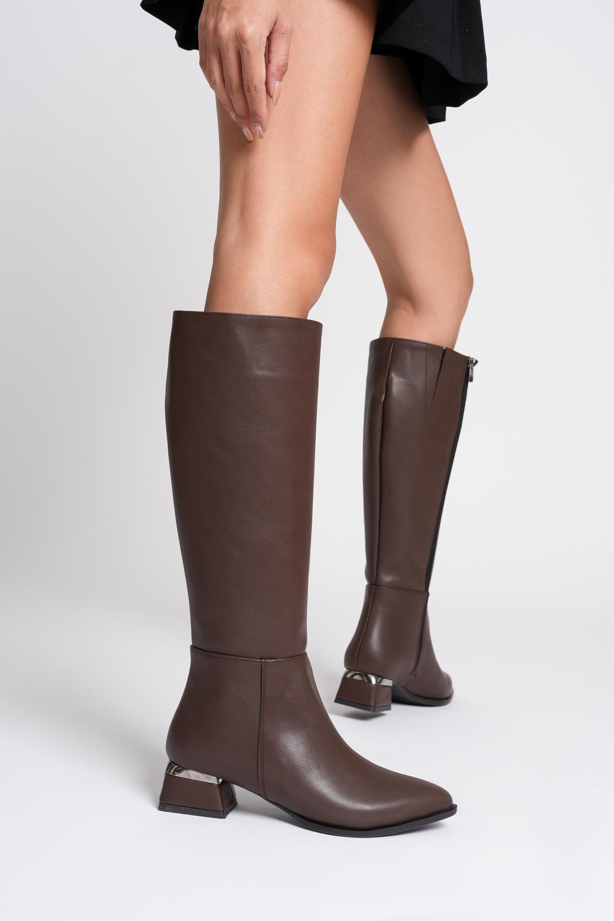 Miami Kahve Küt Burunlu Fermuarlı Kadın Çizme